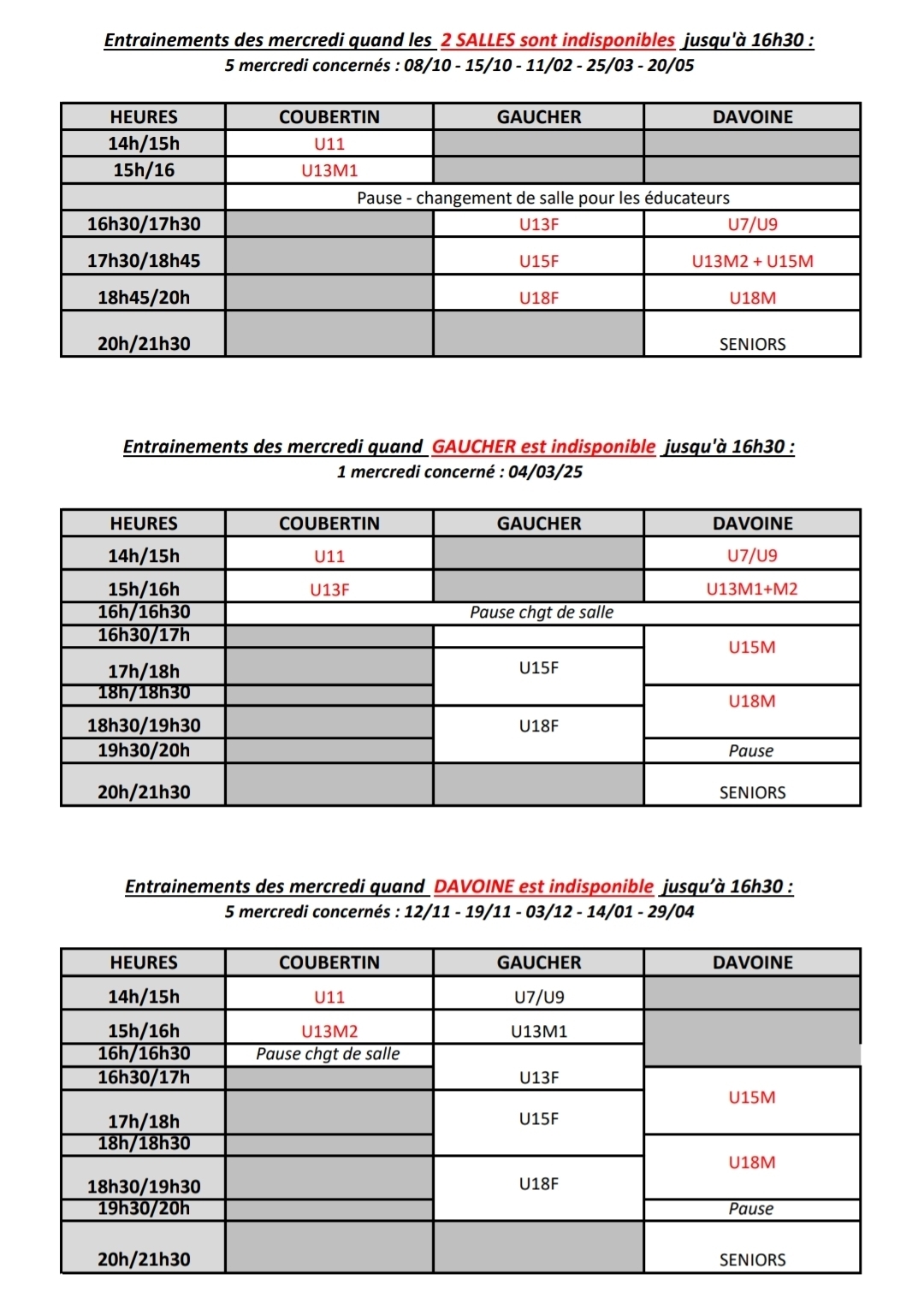 Cette organisation vous sera rappellée avant chaque mercredi concerné via les groupes WhatsApp des équipes.